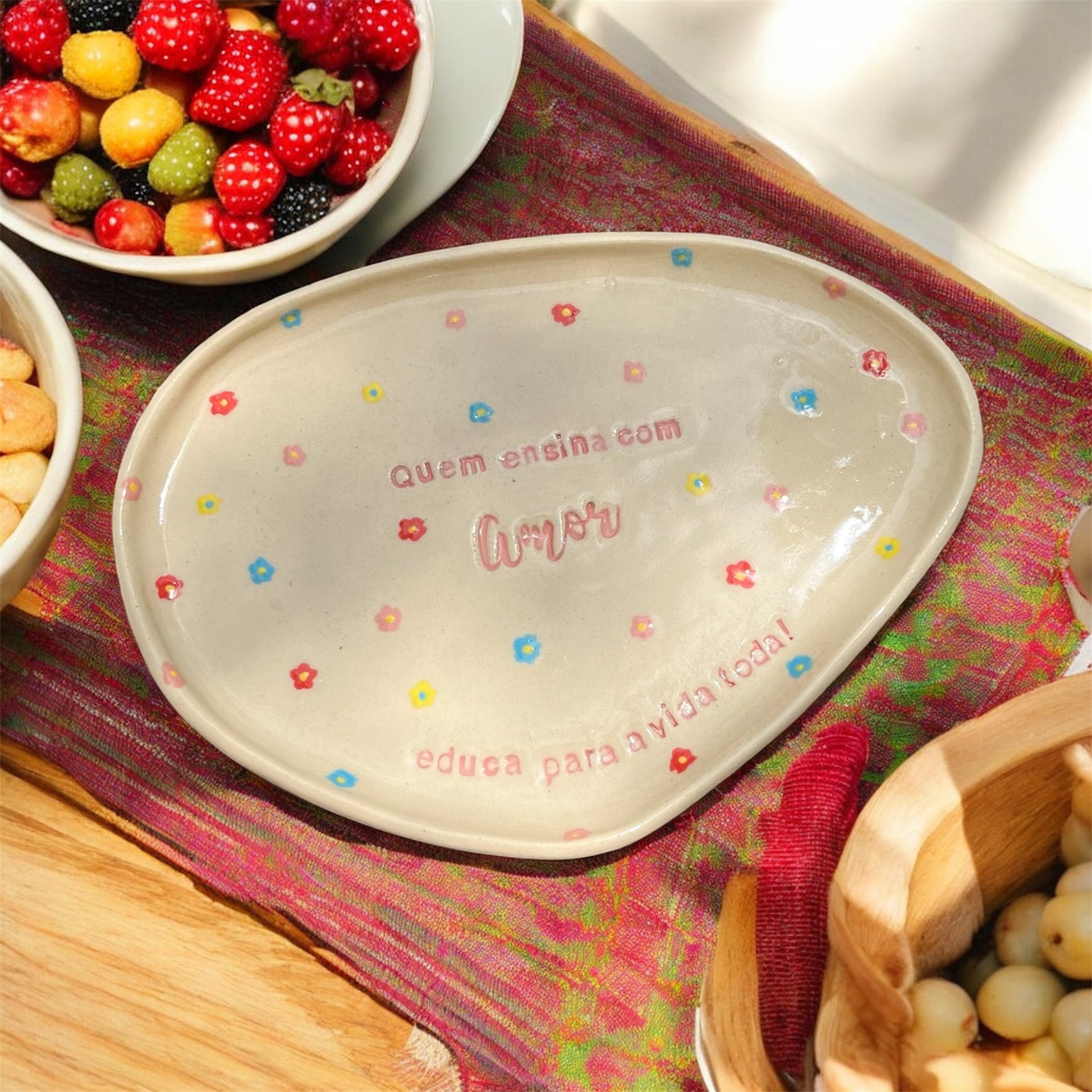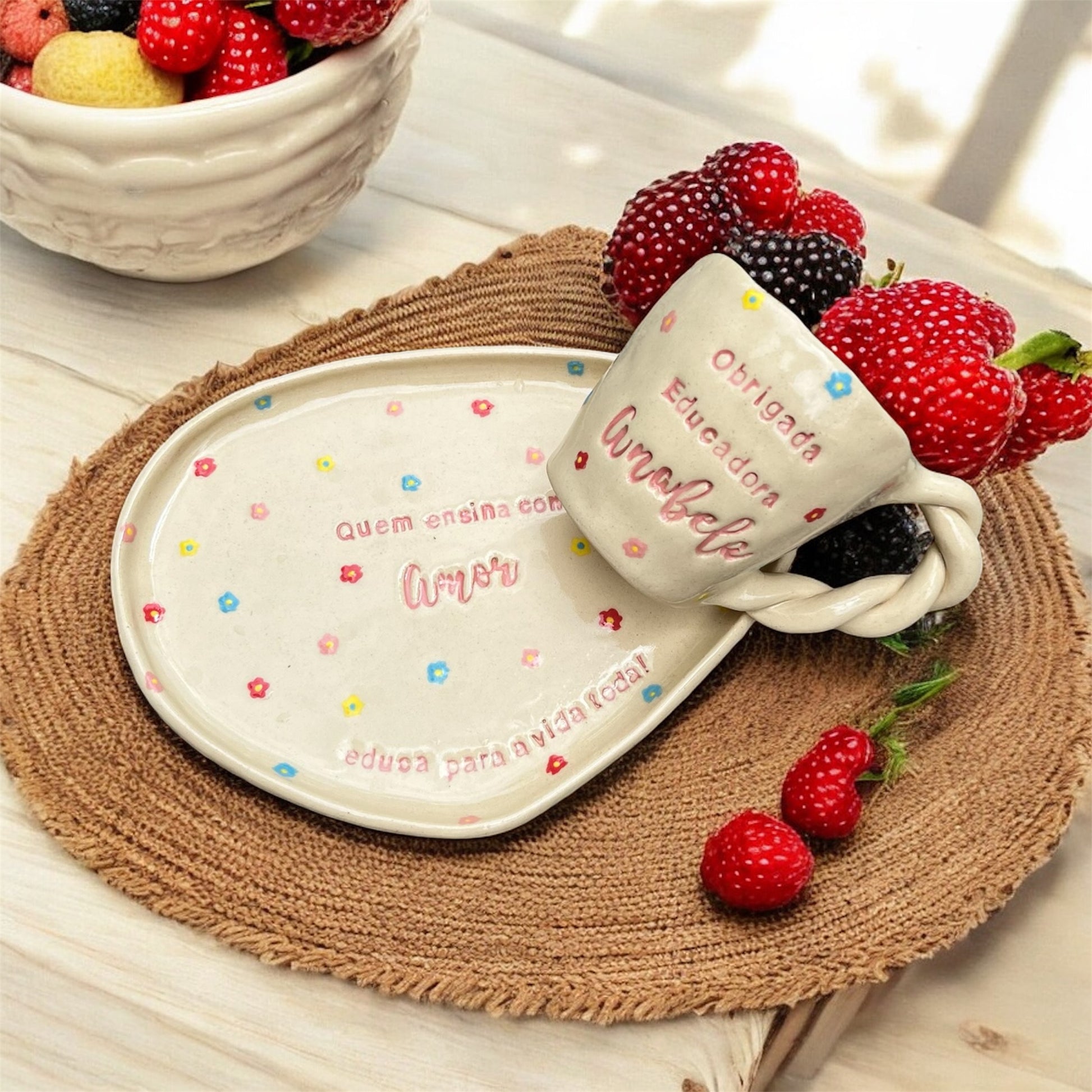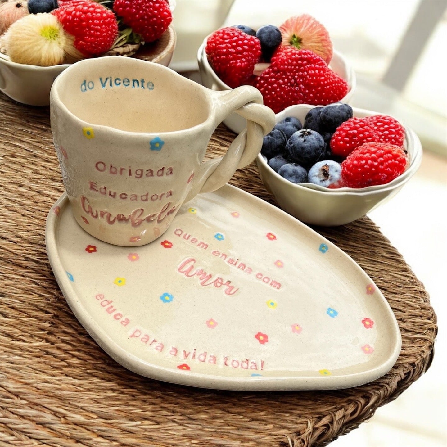 Este conjunto de chávena e prato, criado à mão com toda a dedicação, foi pensado para homenagear uma educadora — alguém que cuida, ensina e inspira com o coração.